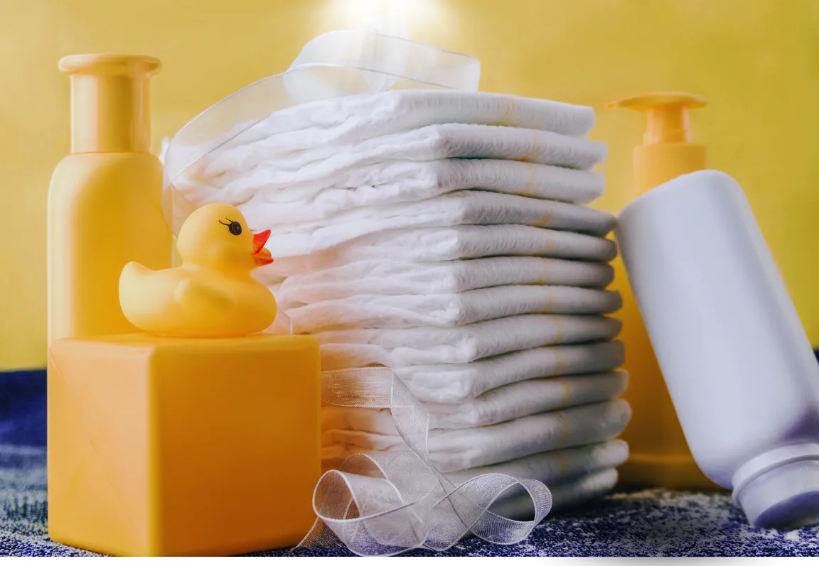 Baby diapers (sizes 3,4,5,6), baby wipes, formula & bottles, baby shampoo, baby body wash, lotion